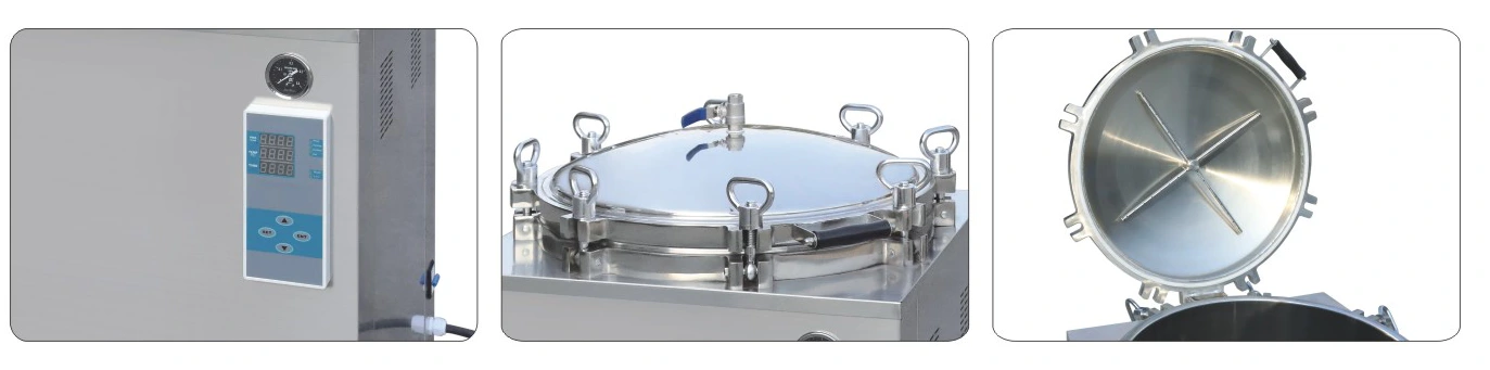 หม้อนึ่งความดันแบบเคาน์เตอร์เป็นอุปกรณ์ฆ่าเชื้อที่ควบคุมด้วยไมโครคอมพิวเตอร์ขนาดกลาง โดยเติมน้ำลงในห้องฆ่าเชื้อโดยตรงเพื่อให้ความร้อนไฟฟ้าเพื่อสร้างไอน้ำแรงดันสูงตามที่ต้องการในวงจรการฆ่าเชื้อ จากนั้นหน่วยจะดำเนินการฆ่าเชื้อไปยังบทความ อุณหภูมิของน้ำจะเย็นลงอย่างรวดเร็วใน 3 นาทีโดยการฉีดอากาศอัดที่เชื่อมต่อด้านนอกหลังจากรอบเสร็จสิ้น และอุณหภูมิของบทความในห้องอาจลดลงเหลือ 30 ~ 40 ℃ หน่วยนี้ควบคุมด้วยโปรแกรม มีสองตัวเลือกการทำงานสำหรับ การเลือก: การต้มฆ่าเชื้อที่อุณหภูมิการฆ่าเชื้อซึ่งต่ำกว่าหรือเท่ากับ 100 ℃ หน่วยนี้มีระบบป้องกันการโอเวอร์โหลดและฟังก์ชั่นเสียงเตือนหลังจากการฆ่าเชื้อ ใช้งานง่ายและสะดวกในการใช้งาน ปลอดภัยและเชื่อถือได้ ใช้ได้กับการฆ่าเชื้อและฆ่าเชื้อบรรจุภัณฑ์อาหาร อุปกรณ์ เครื่องมือ และบทความอื่น ๆ เหมาะอย่างยิ่งสำหรับการทดสอบความเป็นหมันในสถาบันวิจัยอาหาร